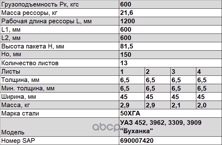 ЧУСОВСКАЯ РЕССОРА 690007420 Рессора передняя для УАЗ 2206, 3303, 3909 13 листов