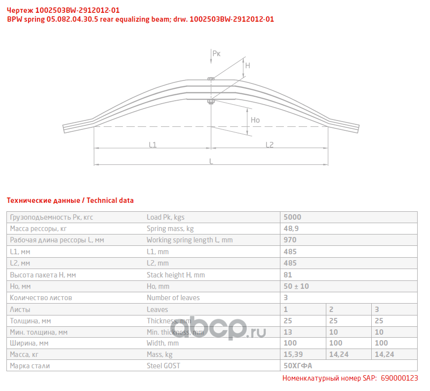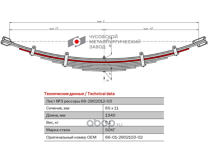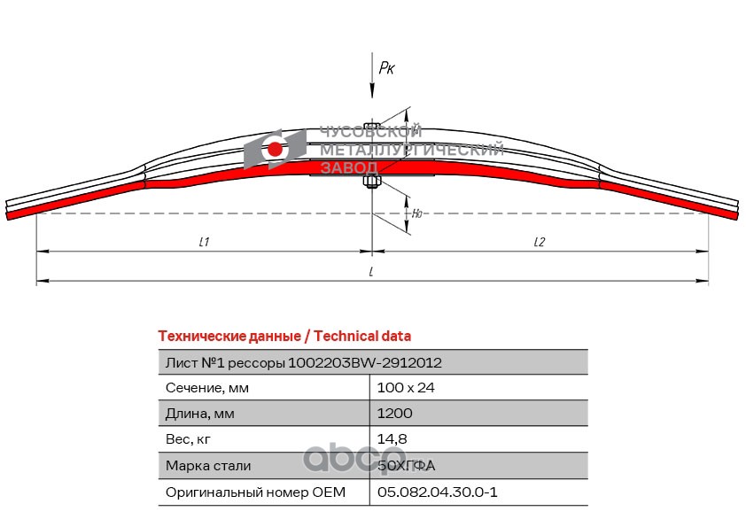 ЧУСОВСКАЯ РЕССОРА 690011090 Лист №1 Рессора задняя для BPW 3 листа