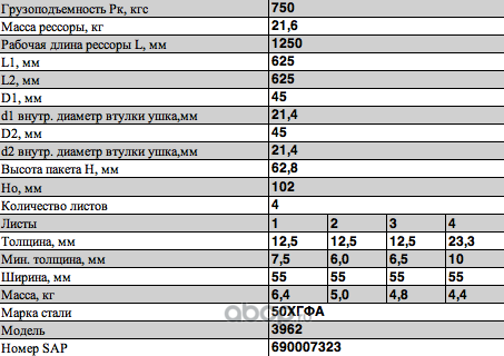 ЧУСОВСКАЯ РЕССОРА 690007323 Рессора задняя для УАЗ 3962 4 листа