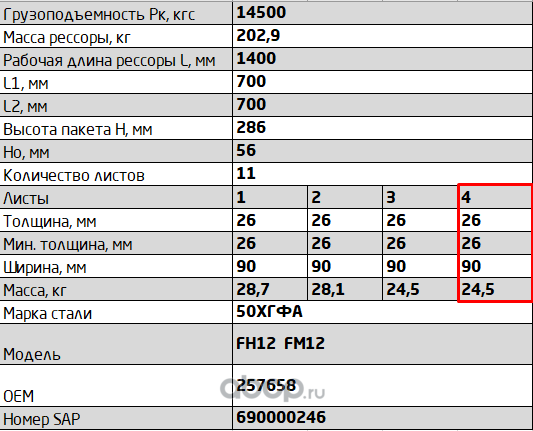 ЧУСОВСКАЯ РЕССОРА 690005257 Лист №7 Рессора задняя для Volvo FH 12, FM 12 11 листов