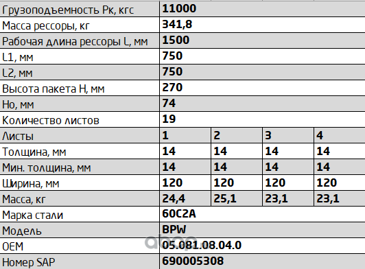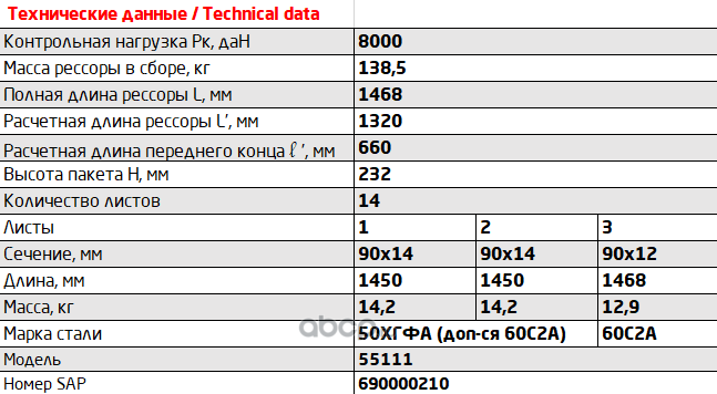 Рессора задняя для грузовиков производства ПАО КамАЗ 65115, 55111, 43118 14 листов