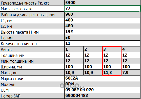 Лист №3 Рессора задняя для BPW 11 листов