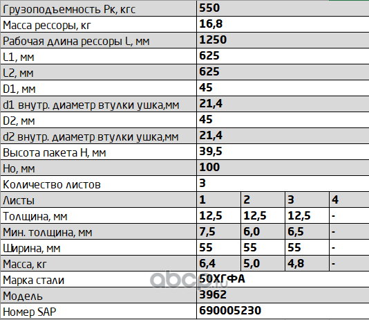 Рессора передняя для УАЗ 2206, 3303, 3909 3 листа