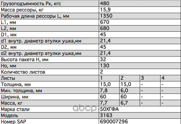 Рессора задняя для УАЗ 3163 2 листа