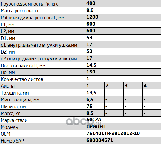 Рессора задняя для прицепа 1 лист