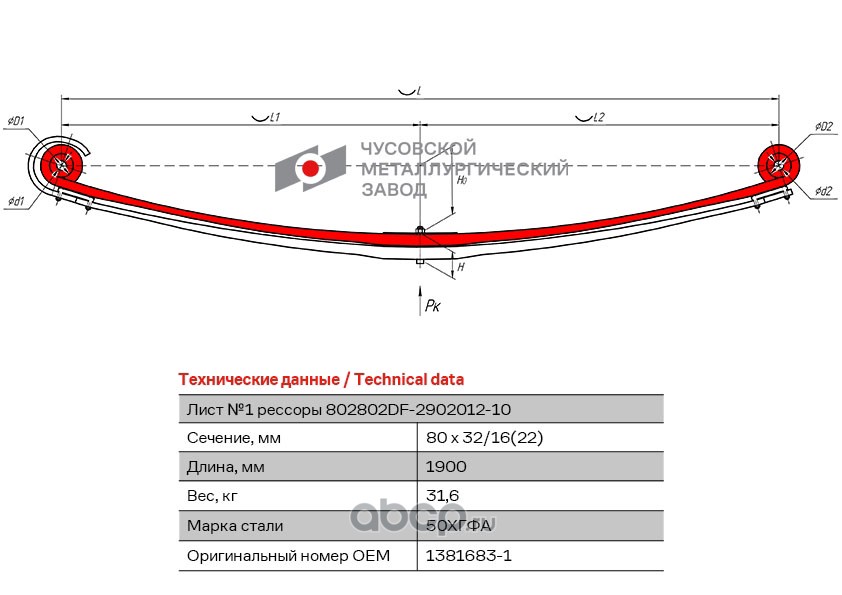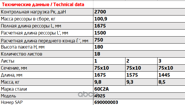 Лист №1 Рессора задняя для DAF XF 105, XF 95 6 листов