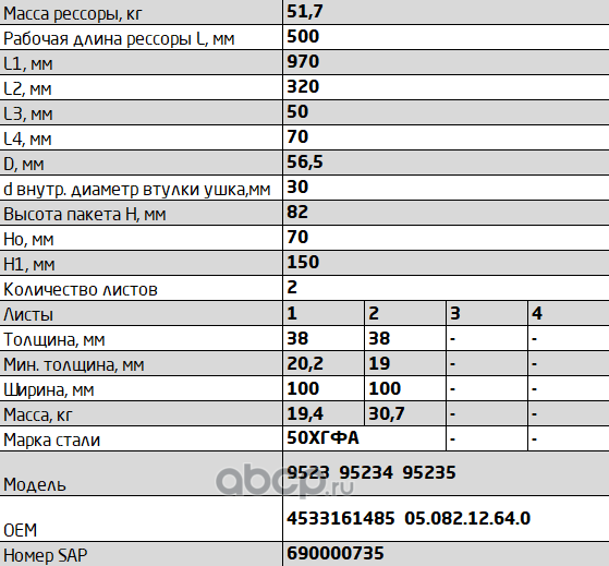 ЧУСОВСКАЯ РЕССОРА 690004413 Полурессора для Mercedes Sprinter, Volkswagen Crafter, аналог 10052010055A