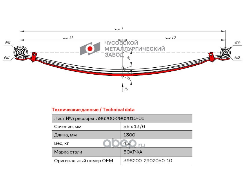 ЧУСОВСКАЯ РЕССОРА OMK690005286 Лист с/х №3 396200-2902050-10