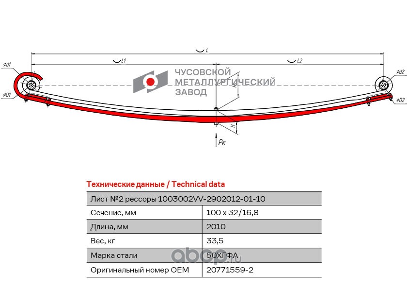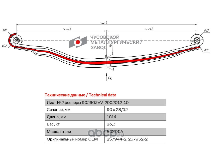 ЧУСОВСКАЯ РЕССОРА OMK690011195 Лист с/п №2 1002502VV-2902050