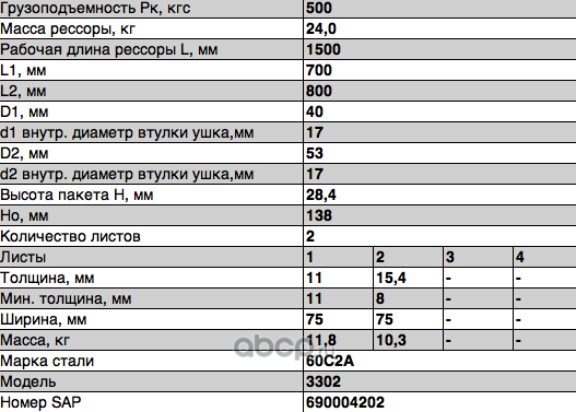 ЧУСОВСКАЯ РЕССОРА OMK690004237 Лист с/ш №1 3302-2902015-05-10