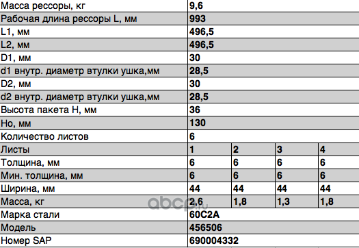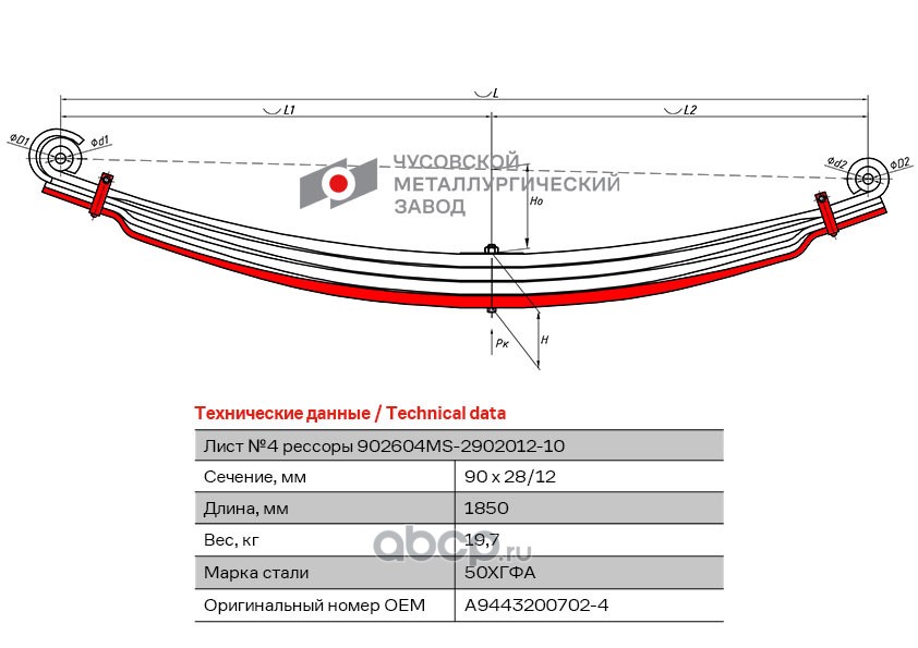 ЧУСОВСКАЯ РЕССОРА OMK690013230 Лист с/х №4 902604MS-2902050