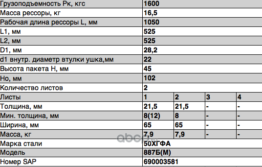 ЧУСОВСКАЯ РЕССОРА OMK690010665 Лист №1 701016BA-2913101