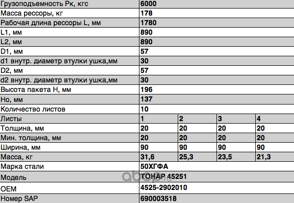 ЧУСОВСКАЯ РЕССОРА OMK690003961 Лист №1 4525TH-2902101-10