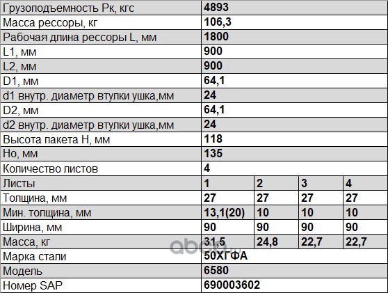 ЧУСОВСКАЯ РЕССОРА OMK690003554 Лист №1 903502RN-2902101-10