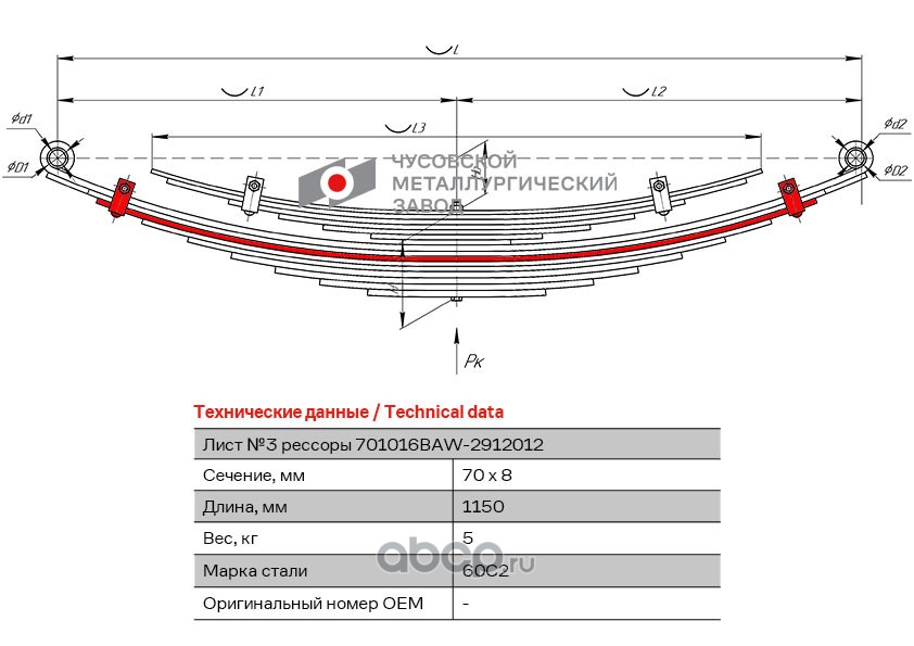 ЧУСОВСКАЯ РЕССОРА OMK690010704 Лист с/х №3 701016BA-2912050