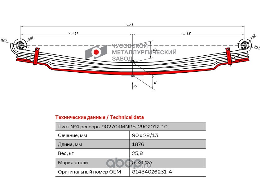 ЧУСОВСКАЯ РЕССОРА OMK690004343 Лист с/х №4 902704MN95-2902050