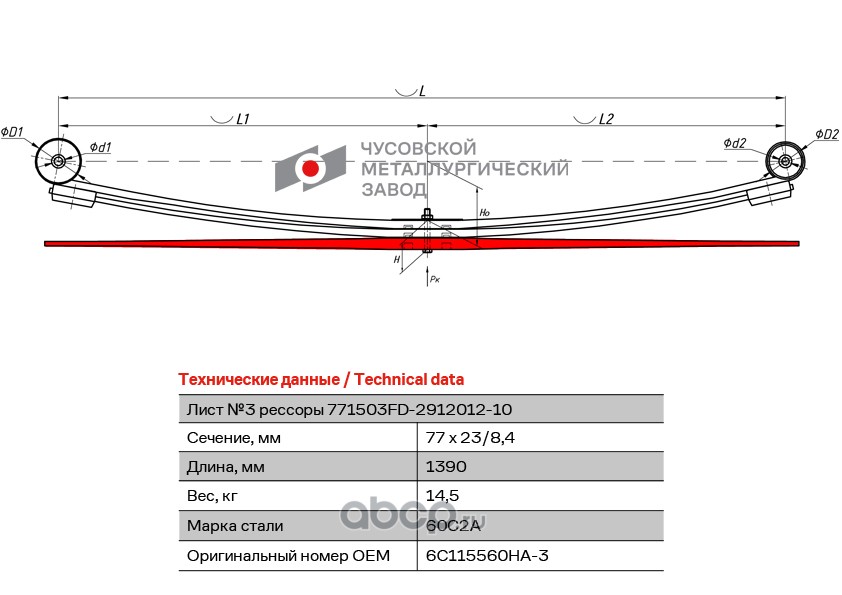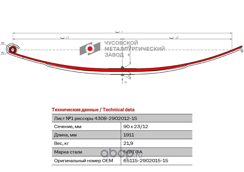 ЧУСОВСКАЯ РЕССОРА OMK690004125 Лист с/в №1 65115-2902015-15