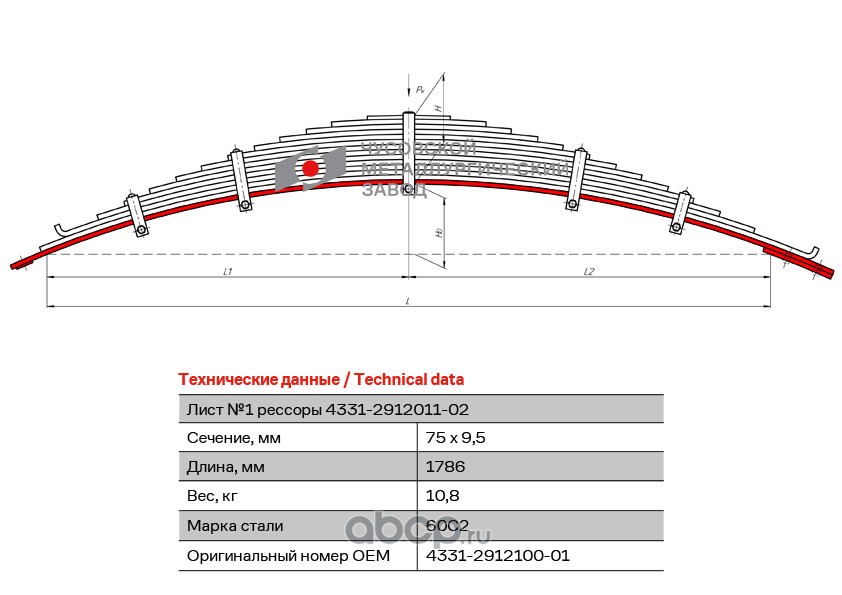 ЧУСОВСКАЯ РЕССОРА OMK690000144 Лист с/н №1 4331-2912100-01