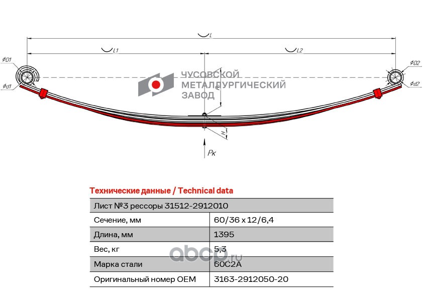 ЧУСОВСКАЯ РЕССОРА OMK690004183 Лист с/ш №1 3163-2912015-10