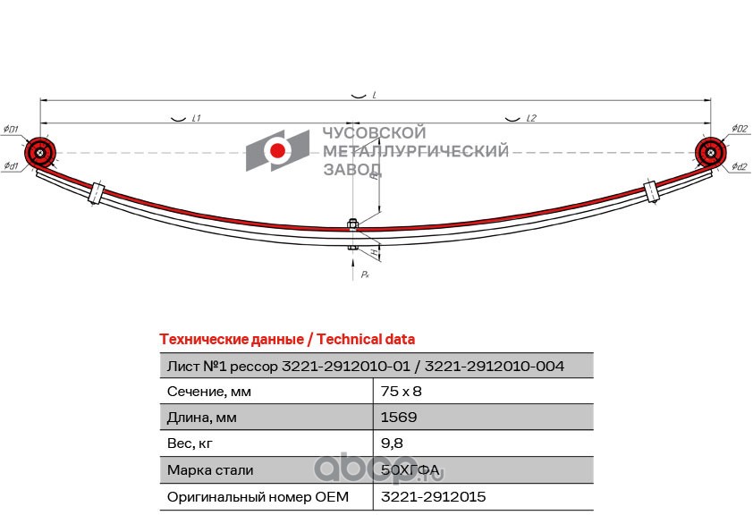 ЧУСОВСКАЯ РЕССОРА OMK690004094 Лист с/ш №1 3221-2912015