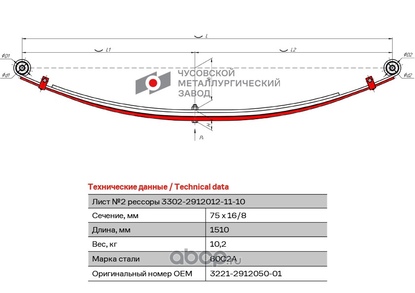 ЧУСОВСКАЯ РЕССОРА OMK690000442 Лист мл №2 3221-2912102