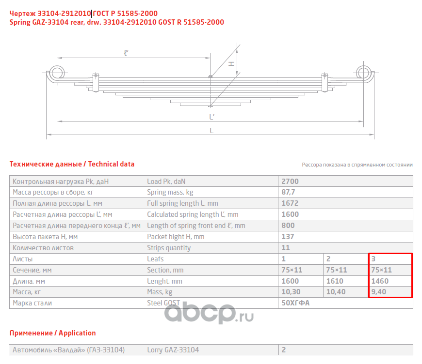 ЧУСОВСКАЯ РЕССОРА 690011189 Лист №3 6580-2902103-30