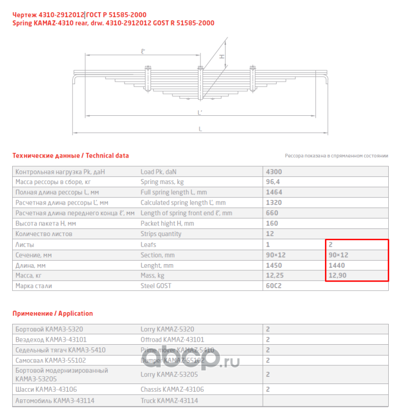 ЧУСОВСКАЯ РЕССОРА 690004446 Лист №2 Рессора задняя для грузовиков производства ПАО КамАЗ 43114, 4350, 4310 9 листов