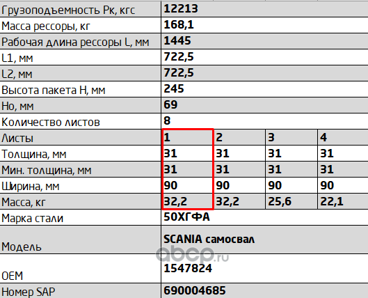 ЧУСОВСКАЯ РЕССОРА 690011146 Лист №1 Рессора задняя для Scania 4-series, PGRT-series 12 листов