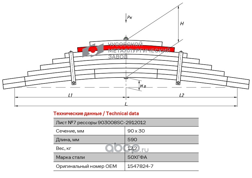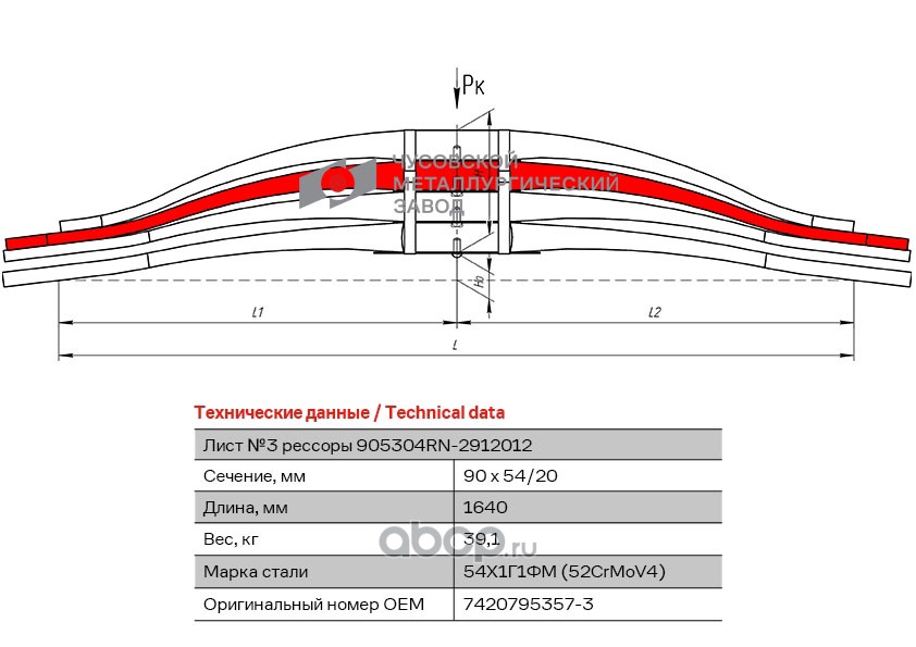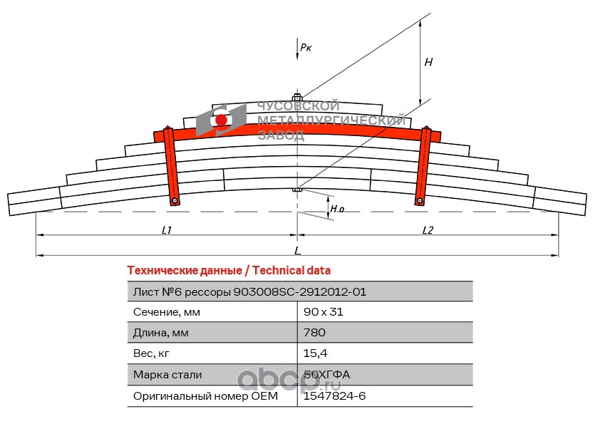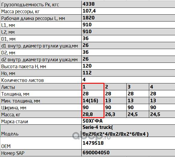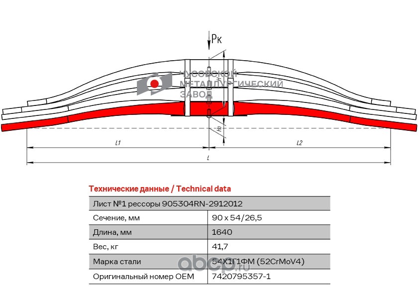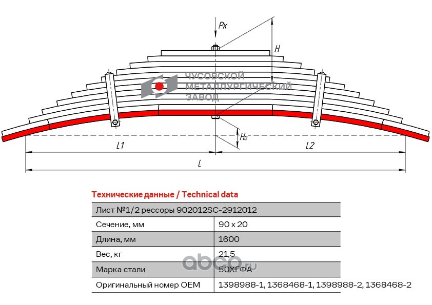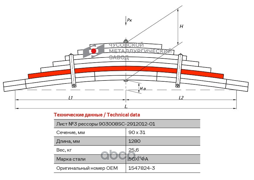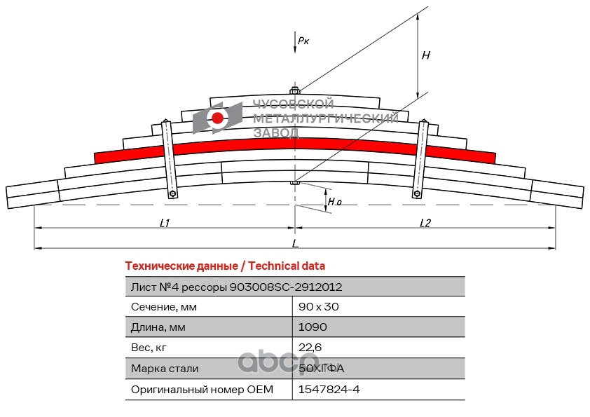 ЧУСОВСКАЯ РЕССОРА 690011187 Лист №1 Рессора задняя для Renault Kerax 4 листа