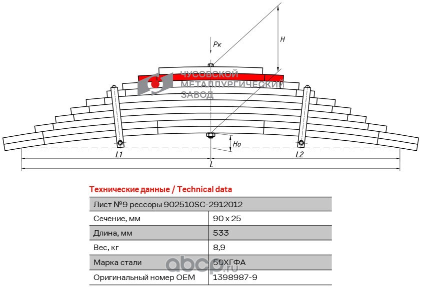 ЧУСОВСКАЯ РЕССОРА 690013214 Лист №9 Рессора задняя для Scania 4-series, PGRT-series 10 листов