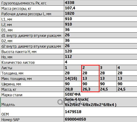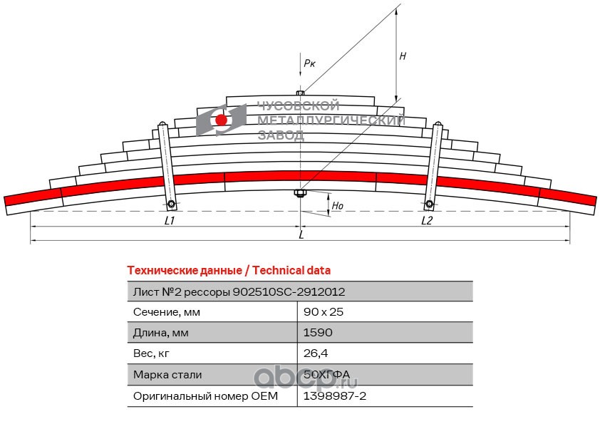 ЧУСОВСКАЯ РЕССОРА 690011222 Лист №2 Рессора задняя для Renault Kerax 4 листа