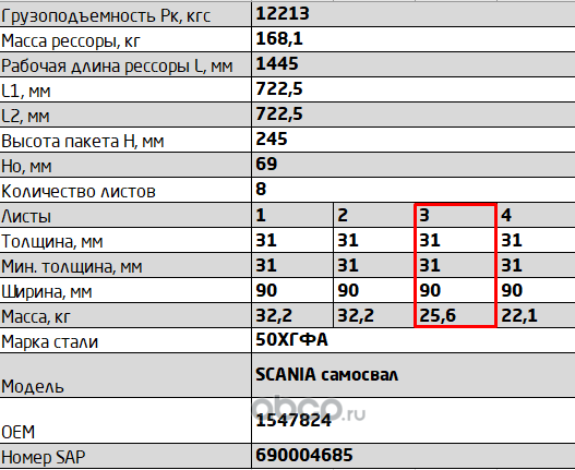 ЧУСОВСКАЯ РЕССОРА 690004032 Лист №3 Рессора задняя для Scania PGRT-series 8 листов