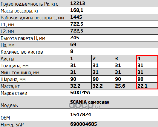 ЧУСОВСКАЯ РЕССОРА 690010708 Лист №4 Рессора задняя для Scania PGRT-series 8 листов