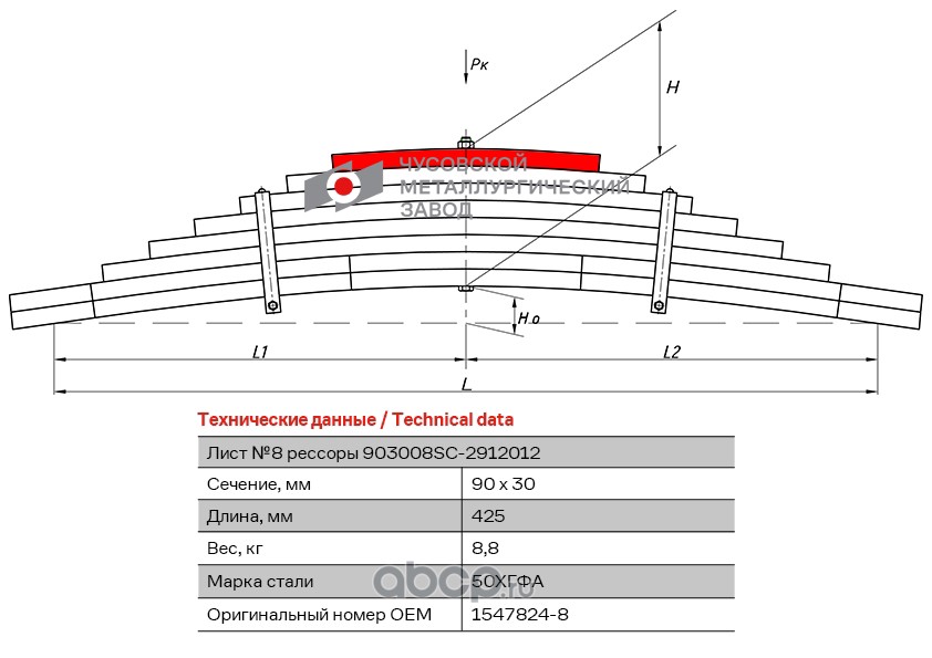 ЧУСОВСКАЯ РЕССОРА 690004744 Лист №1 Рессора задняя для Scania PGRT-series 8 листов