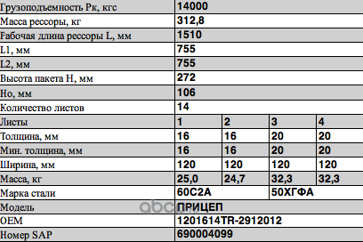 Рессора задняя для прицепа ЧМЗАП 9906, НефАЗ 9334, НефАЗ 9693 13 листов