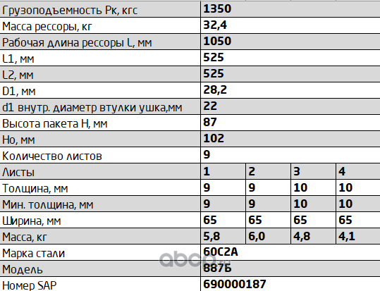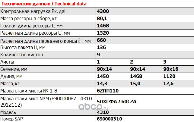 Рессора задняя для грузовиков производства ПАО КамАЗ 43114, 4350, 4310 9 листов