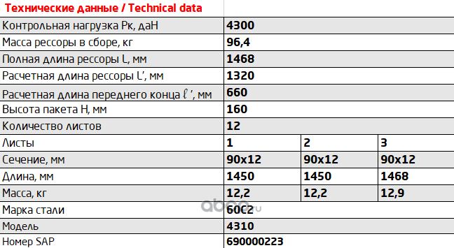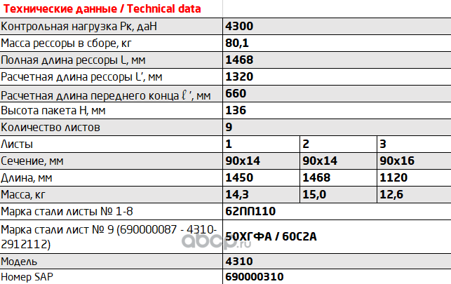 Рессора задняя для грузовиков производства ПАО КамАЗ 43114, 4350, 43261 12 листов