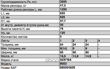 Рессора задняя для прицепа 9002 3 листа