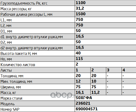 Рессора задняя для УАЗ 236021 2 листа