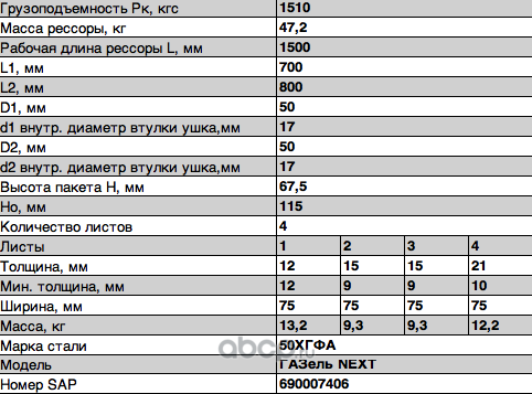 Рессора задняя для ГАЗ NEXT A65R32 4 листа