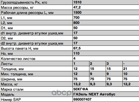 Рессора задняя для ГАЗ NEXT C41R92 4 листа