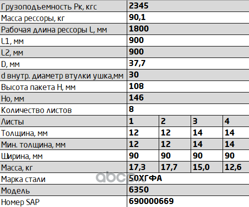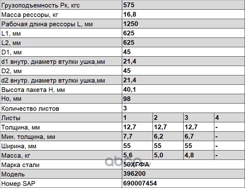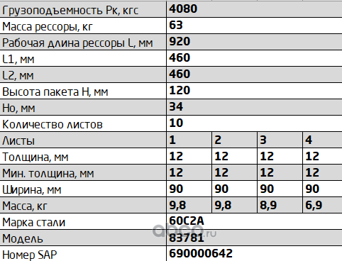 Рессора задняя для прицепа MA3 8378, 83781 10 листов
