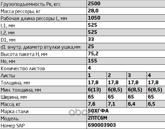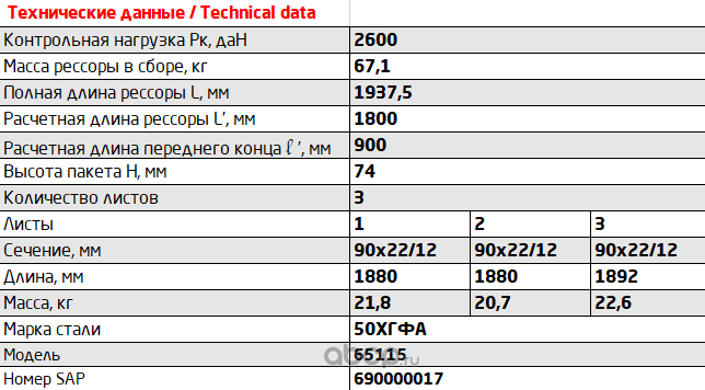 Рессора передняя для грузовиков производства ПАО КамАЗ 65115, 65116, 65117 3 листа