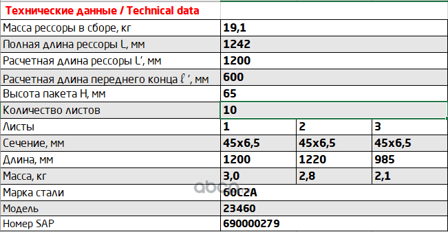 Рессора задняя для ВИС 23460 10 листов