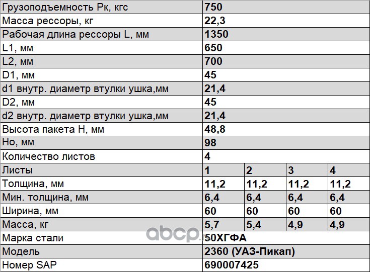 Рессора задняя для УАЗ 2360, 3161 4 листа