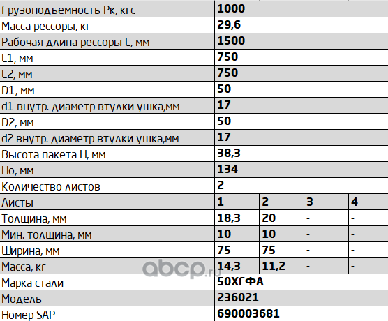 Рессора задняя для УАЗ 236021 2 листа