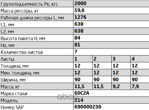 ЧУСОВСКАЯ РЕССОРА 690000230 Рессора передняя для КрАЗ 214 7 листов