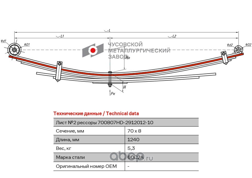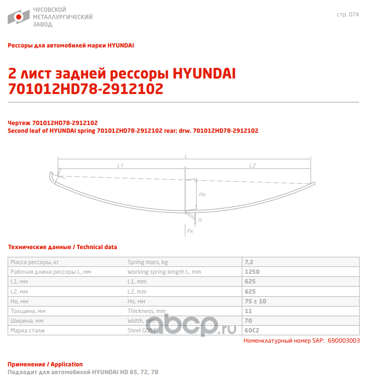 ЧУСОВСКАЯ РЕССОРА 690004635 Лист №2 Рессора задняя для Hyundai Porter 2 7 листов