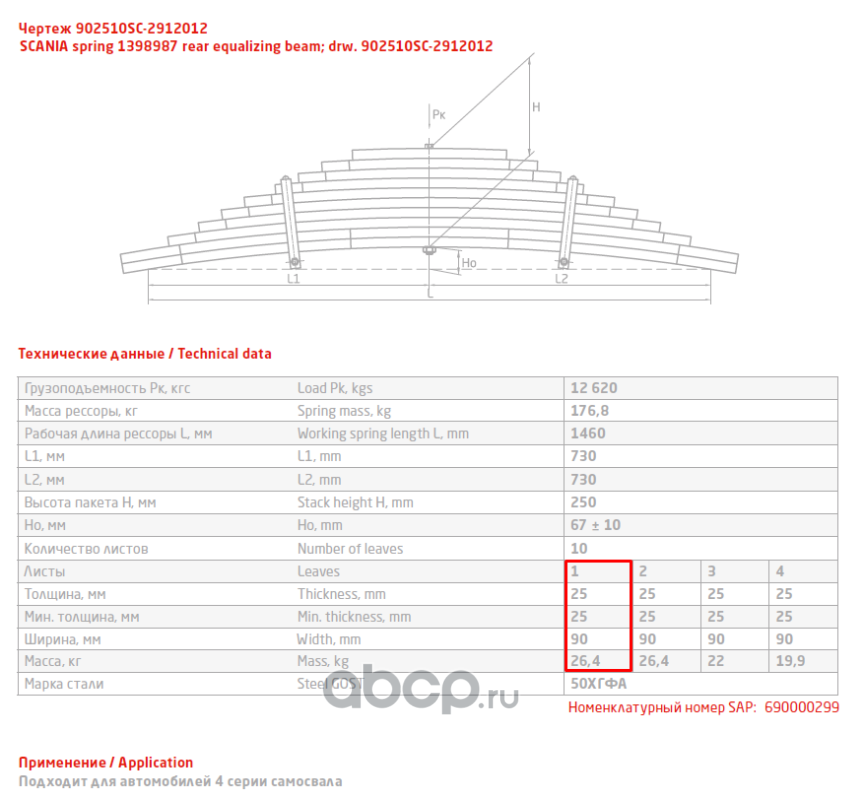 ЧУСОВСКАЯ РЕССОРА 690003542 Лист №1 Рессора задняя для Scania 4-series, PGRT-series 10 листов
