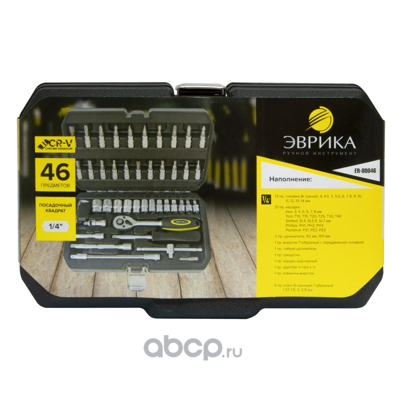 Набор торцевых головок 1/4"DR 6-гранный 46 предметов 1/10